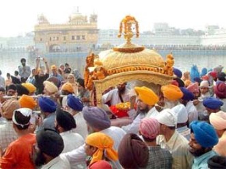 de Siri Guru Granth Sahib. Daarna gaan ze via de weg terug door de